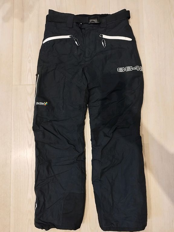 Slidinėjimo, sniego kelnės 8848 Altitude. Kelios užtrauktukinės kišenės, juosmuo su nuimamu diržu, purvo apsaugos, dvigubas patvarus audinys apačioje, reguliuojamas apačia. Šiltos, atsparios drėgmei ir vėjui. Be defektų, labai geros būklės. Dydis 160. Tiktų ir smulkios sudėties moteriai, dėvinčiai S dydžio drabužius.