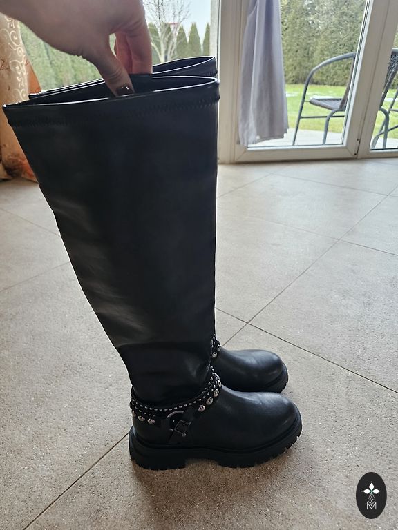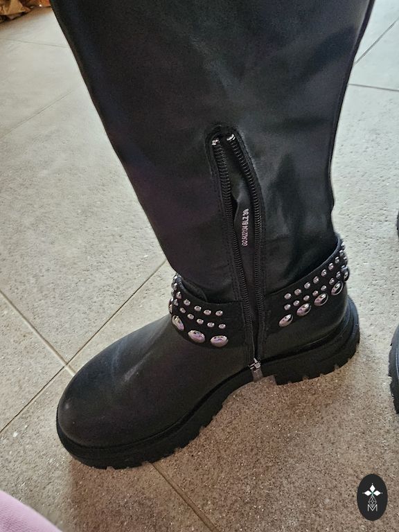 Nauji, niekada nedėvėti. Be pašiltinimo. Pirkinys stovėjo spintoje ir tapo per mažas. Įsiūta papildoma guma, nuotrauka pridedama, bet vis tiek per maži, vėl stovi spintoje nenaudojami. Vidpadis 25 cm, kiti matmenys nuotraukose. Kaina žema, nes noriu tiesiog atlaisvinti vietą spintoje.