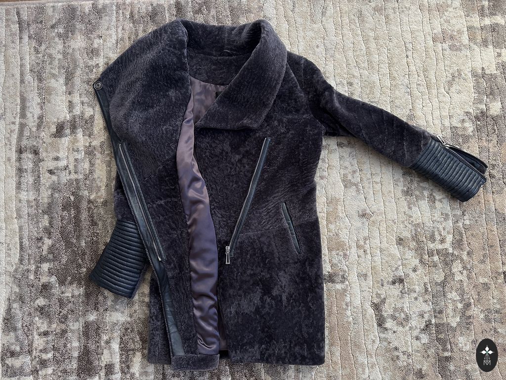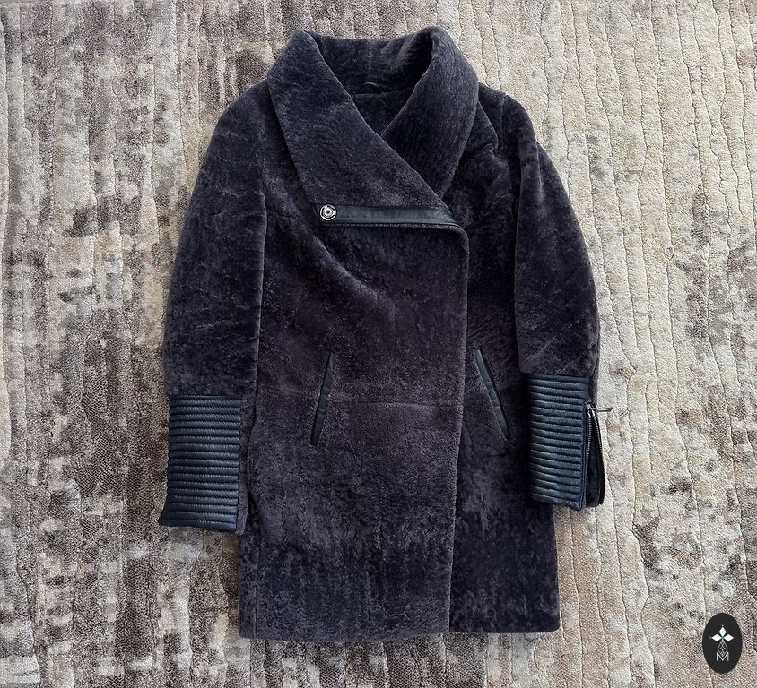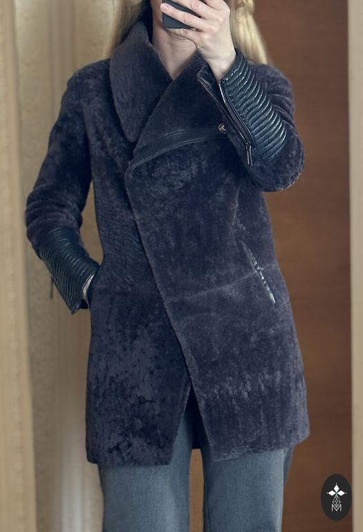 Cirpta ūdele, rare color graphite, sewn in Latvia, chest circumference up to 115 cm, located in Riga, rarely worn. Sheared mink, rare color graphite, rarely worn, custom-made in Latvia, chest circumference up to 115 cm, located in Riga.
