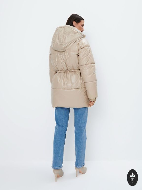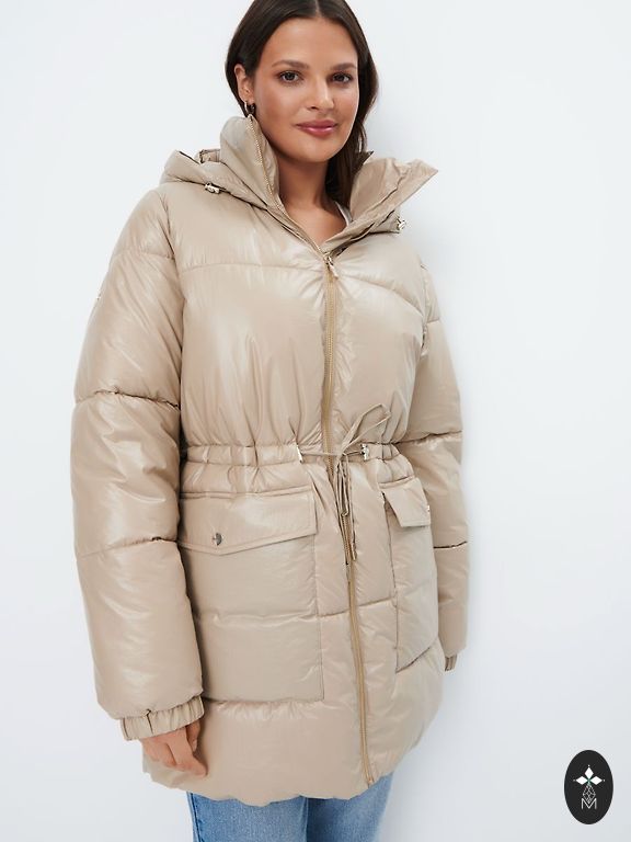 Сшита по принципу куртки. Рукава на кулиске, пояс тоже внутри кулиска и по низу кулиска,всё можно регулировать.