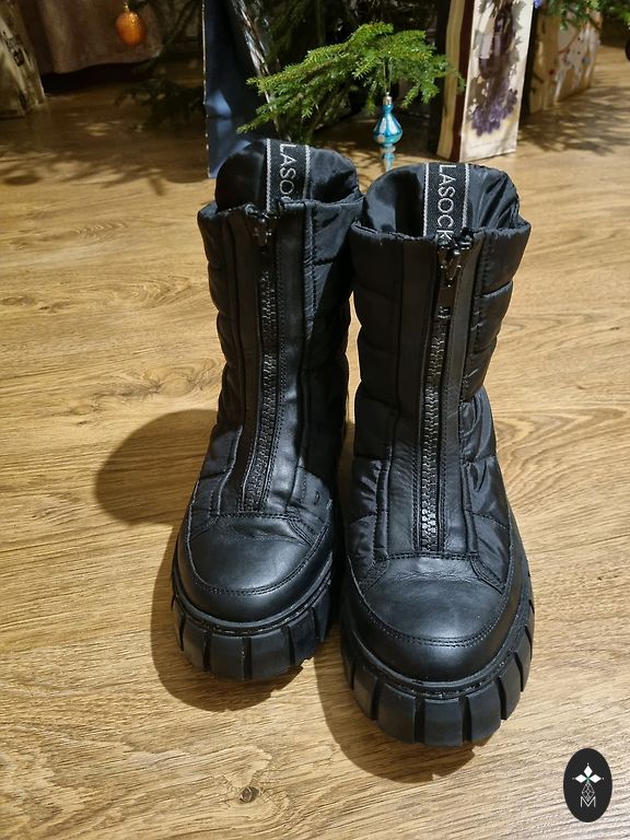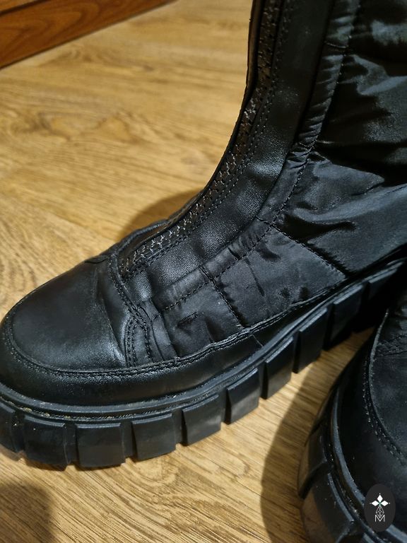 Seemisnahk+kunstnahk, mugav liist. Sees on katte varbal veidi pragunenud, see ei mõjuta (näha fotol). Vajadus kontsaplekkide vahetamiseks (näha fotol) 24cm sisetald, stabiilne 38 suurus.