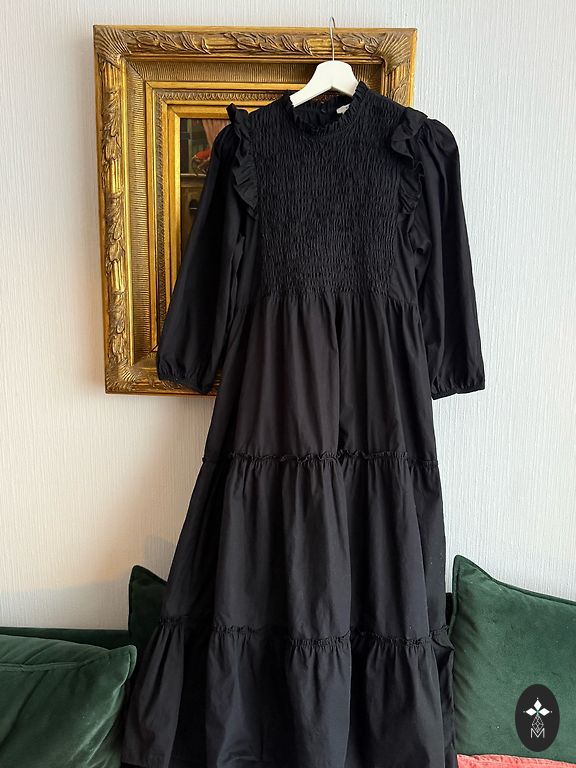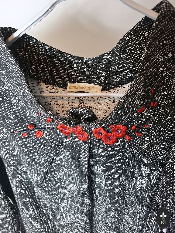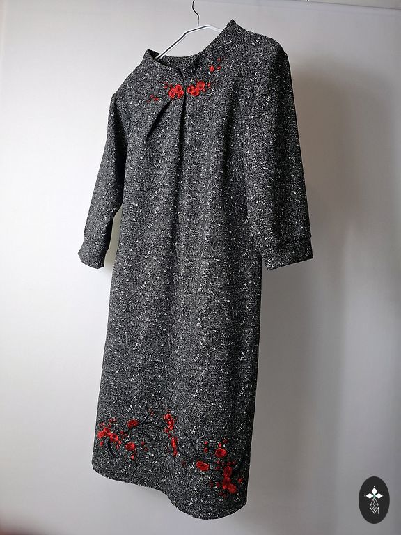 Glīta, praktiska kleita, skaists fasons, labs auduma kritums. Ar izšūtu priekšpusi, 3/4 piedurknēm. Praktiska, jo neburzas.