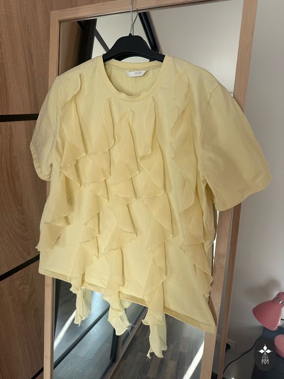Naujas medvilninis marškinėlis su pilka nėriniuota medvilnės raukšle. Dydis S (tinka ir laisvam XS), ilgis 60 cm, plotis krūtinės 43 cm. Jei perkate dvi prekes ir daugiau - paštomatas nemokamai.