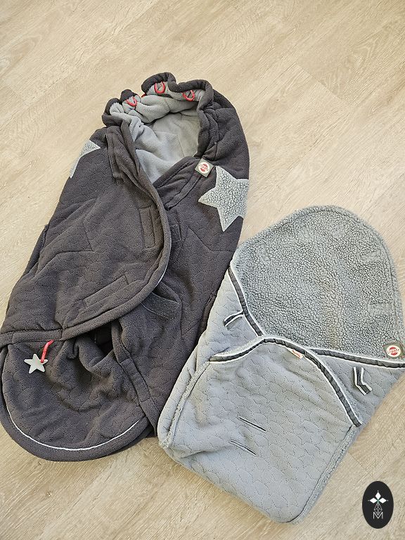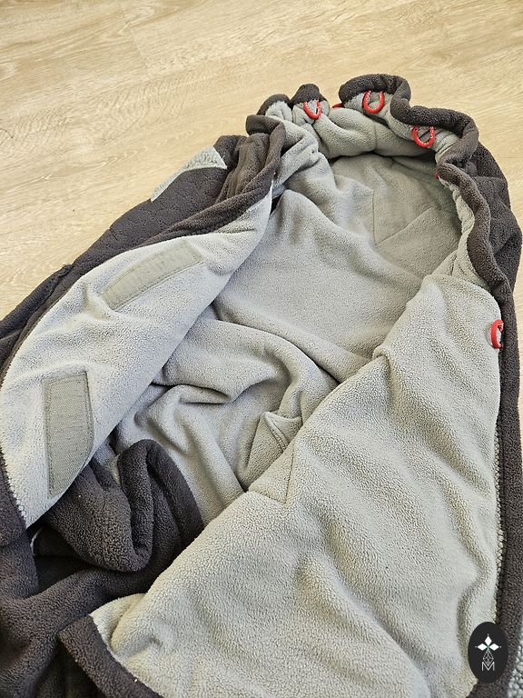 Bought new, used by one child. Warm fleece sleeping bag, usable in reclining strollers and also in sitting strollers or car seat. Also includes an inner lining for the sleeping bag - warm and soft, which can be separately placed in the car seat.