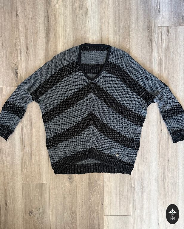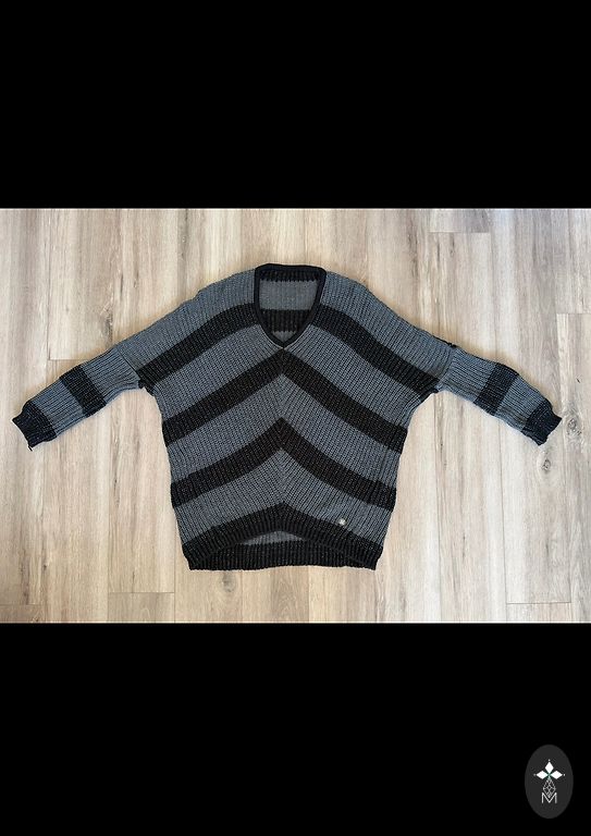 Продаём удлинённый свитер толстой вязки красивого графитового цвета , мягкий и тёплый . Грудь - 100 см , длина рукава ( от горловины ) - 42 см . длина по спинке - 78 см .