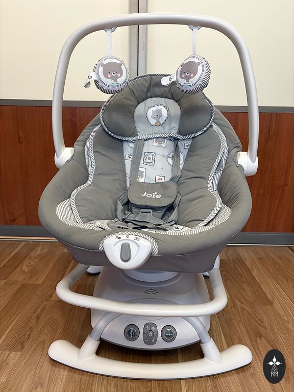 pārnēsājamo zvilni. Nakts lampiņa ar 4 līmeņu spilgtumu. Noņemams un mazgājams pārvalks. Piekaramas rotaļlietas. Barošanas vads vai baterijas. 5 punktu drošības jostas.