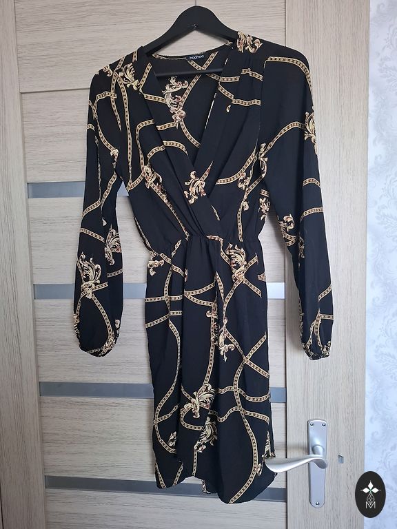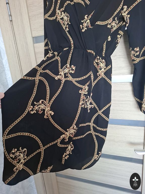 Dress worn once. The fabric is not stretchy, so it will fit a stable S or XS size. The fabric is natural and pleasant on the body, medium thickness, with a wide belt that adds a touch to the dress, 2/3 sleeve length, and has pockets.