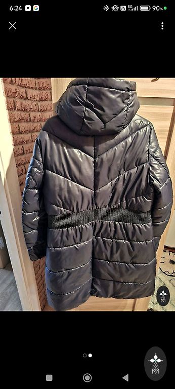 No buttons, adjustable, with belt. Chest, hips ~110 cm (may be slightly larger), length 74 cm. 70% viscose, 30% polyester.