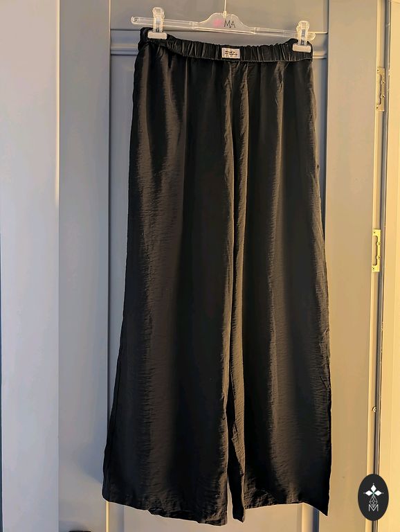 Брюки из экокожи. Надеты один раз - как новые. Куплены в магазине Lindex. Размер указан M, но соответствует L. Длина ~100 см, брюки до щиколотки. Внутренний шов - 72 см. Высокая талия, обхват до ~88 см. Отправляю за дополнительную цену.