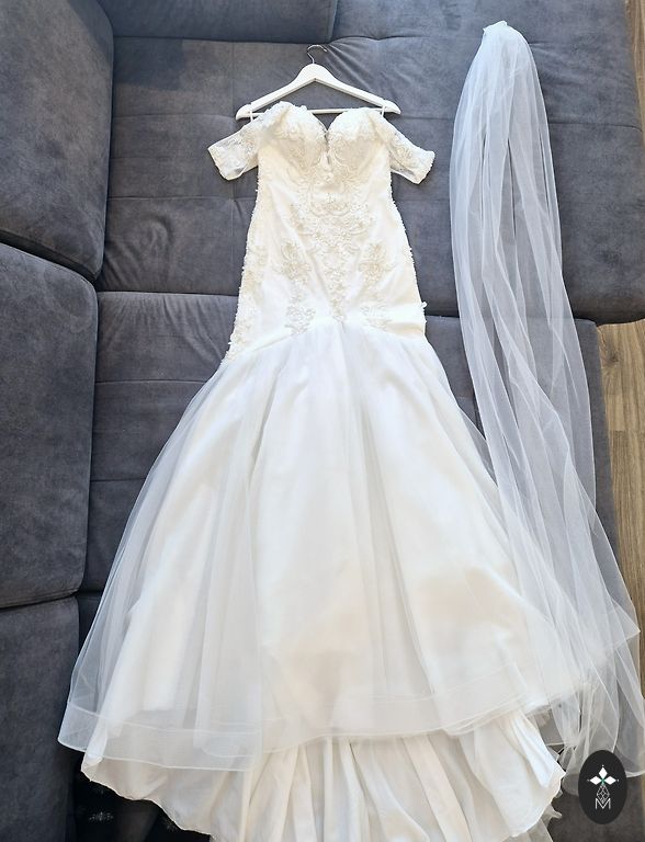 Свадебное платье, было куплено 5 лет назад за 600€. Замуж выходила в другом. Полностью новое, единственное что нужно это отпарить, так как 5 лет весело в шкафу в чехле.