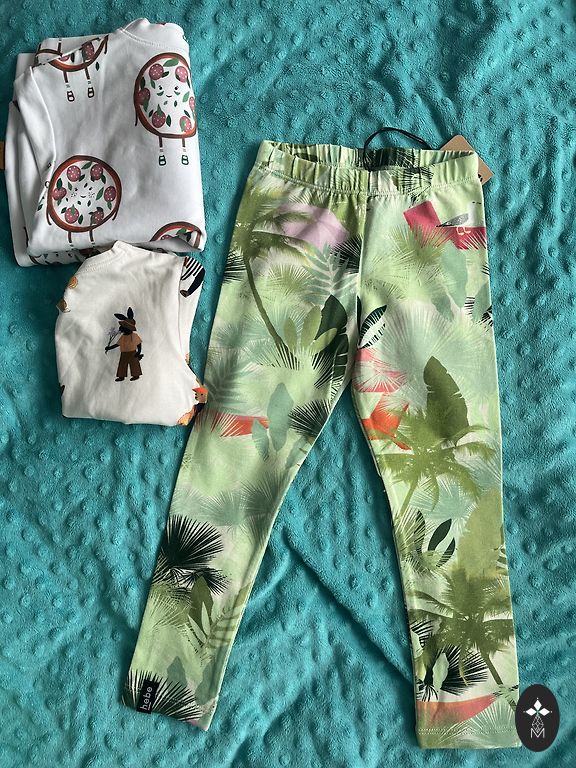 Šiltintas minkštas komplektas be defektų. Kelnės yra 110/116 dydžio, megztinis 116/122 dydžio. Kelnės dėvėtos mažai, bet megztinis dėvėtas daugiau.