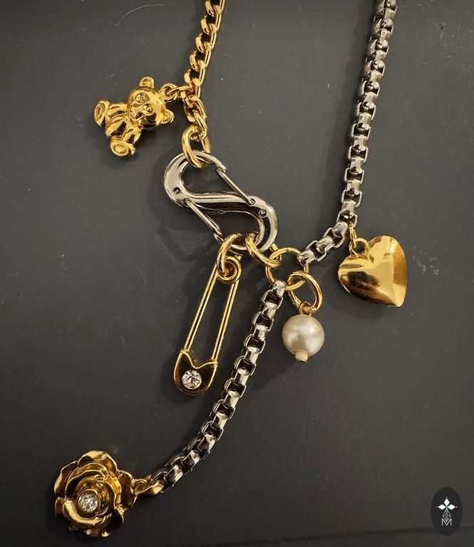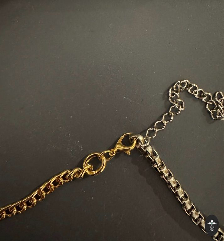 Pikkus 39,5 + 5 cm. Kullatud naturaalkristallidega.
