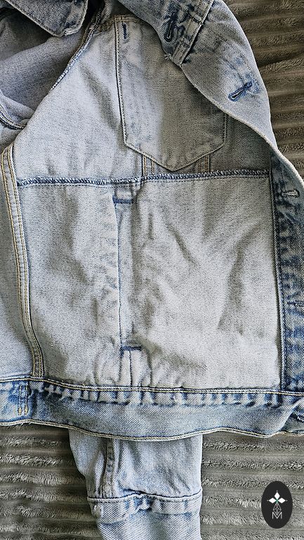 Skaista jaka ar tādu kā stepējumu, aiztaisās uz 3 kņopēm, ir arī josta, lielas kabatas, bez kapuces.