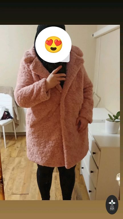 Krūtinė: 120 cm Klubai: 128 cm Ilgis: 74 cm Šoninės kišenės Graži rožinė/pilka spalva Pažymėta kaip 42 dydis, bet yra per didelė