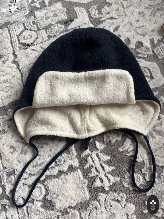 Piecas cepurītes, izmēri bildēs, divas 50cm, divas 56cm un zilā ar nadziņu, sasienama.