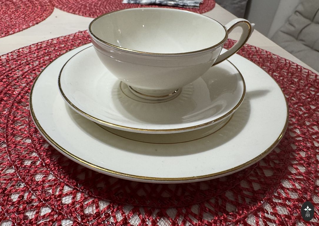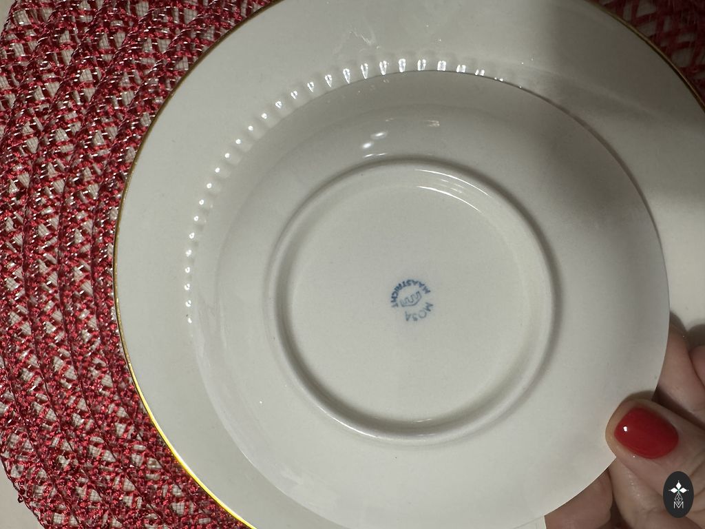 Grezni MZ Altrohlau CMR (made in Czechoslovakia) porcelāna duo ar rozēm un zelta ornamentiem. Tilpums 100 ml. Pieejami 2 duo. Kādai apakštasītei vidū padzisis zeltījuma ornaments, kādai rūpniecisks defekts - izplūdusi rozīte, taču kopskatu stipri netraucē. Tāpēc piedāvāju lēti.