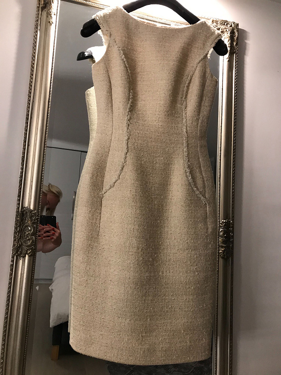Vienu reizi vilkta muslīna kleita ar interesantu kakla izgriezumu. Krūtīs 106 cm, garums 110 cm.