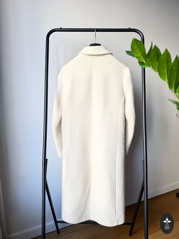 Italų prekės ženklo klasikinio kirpimo pusiau medvilninis paltas, šiltas, be pamušalo. Be defektų! Ilgis 92 cm, liemuo 52 cm, rankos ilgis nuo peties 62 cm.