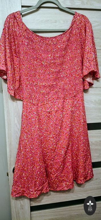 Элегантное платье, грудь 136 см, талия 152 см, плечи 42 см, рукав 53 см, длина 120 см, размер 22-24, вискоза 95 %, эластан 5 % + доставка.