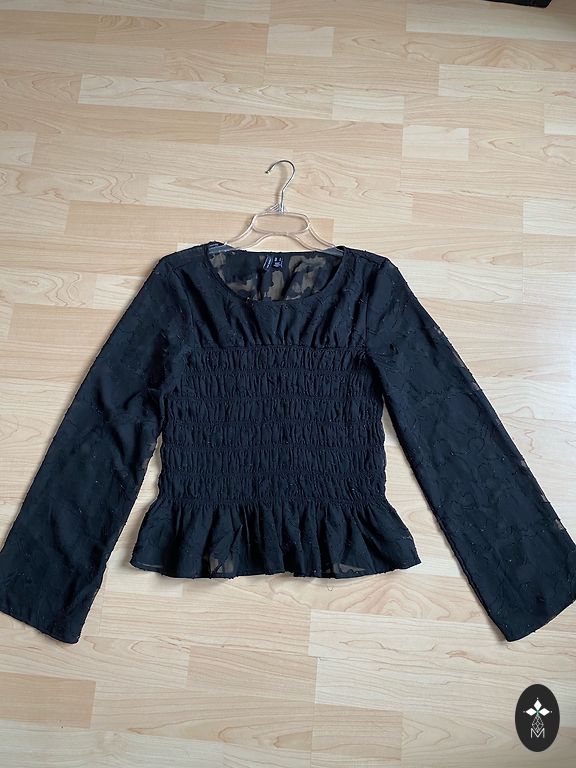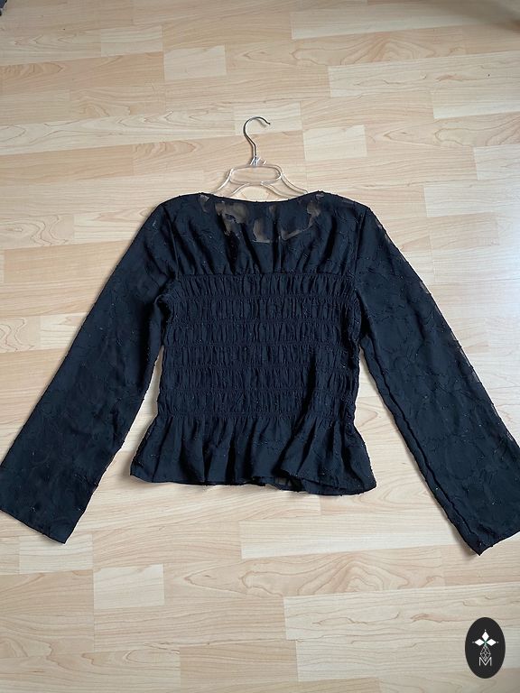 Krāsa nav tīri melna - drīzāk tumša, tumši pelēka, pie vīlēm nedaudz gaišāka. Uz etiķetes norādītie izmēri ir I-44, USA-10, GB-14, F-40, D-40. Mērījumi bildē. Diezgan dziļš kakla izgriezums (4. bildē). Цвет не чисто чёрный- скорее тёмно, тёмно серый , по швам немного светлее. Размеры указанные на бирке I-44, USA-10, GB-14, F-40,D-40. Измерения на фото. Довольно глубокий вырез голловины (на 4 фото).
