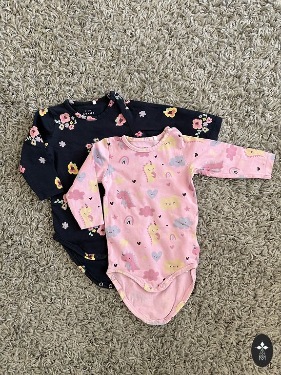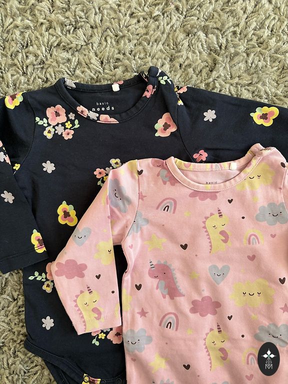 2 lightweight, soft, and stylish rompers, size 3–6 months.