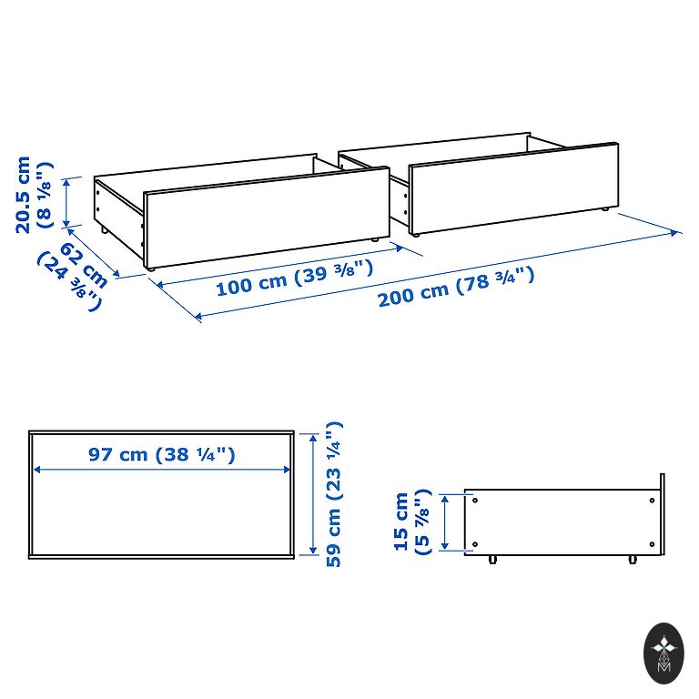 Lova 210x230x130, naktinės spintelės 50x40x51