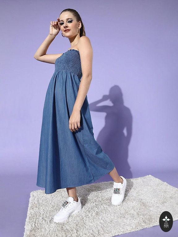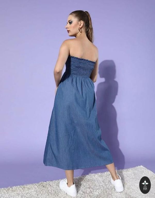 Džinsa zila kleita ar izšuvumu