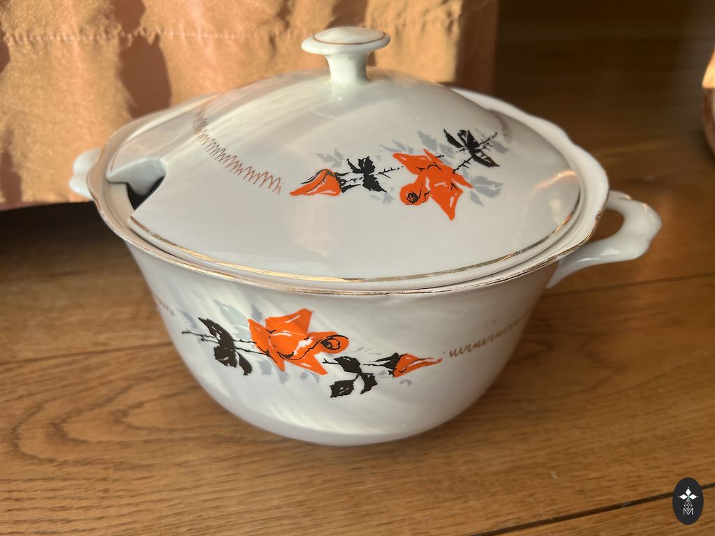 Vienīgais servīzes trūkums - cukura traukam nav vāciņš, skat. pēdējo attēlu. Servīzi pārdodu kā komplektu.