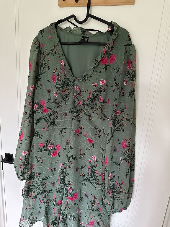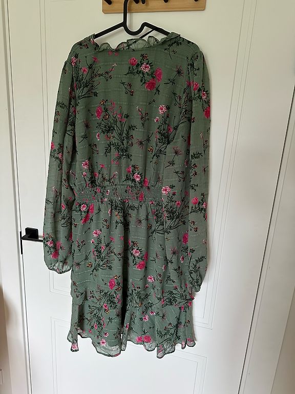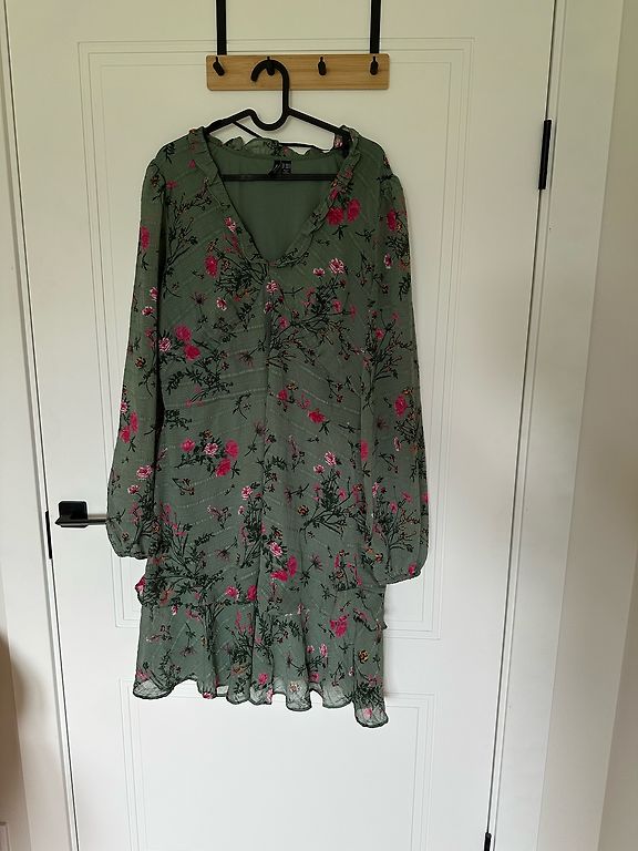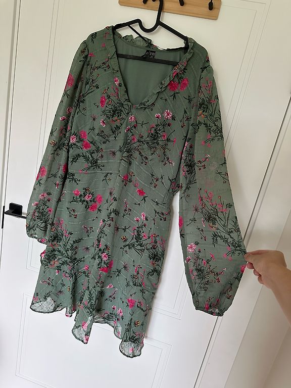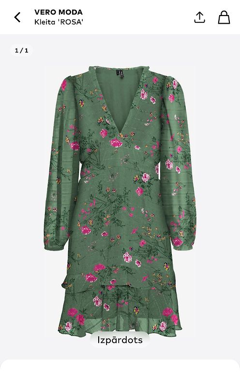 Nuostabi suknelė su tropiniu motyvu, nepaprastai gražiai atrodo ant kūno, turi paslėptą užtrauktuką, krūtinės dalyje mažos pagalvėlės. Ilgis - 86 cm.