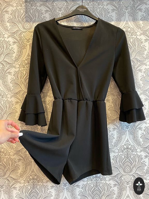 Flexible shorts romper. Ribbed material. Size indicated as M. Length 78cm, from shoulder to crotch 68cm. Stretches as needed in the bust, waist, and hips. Worn once, like new condition.