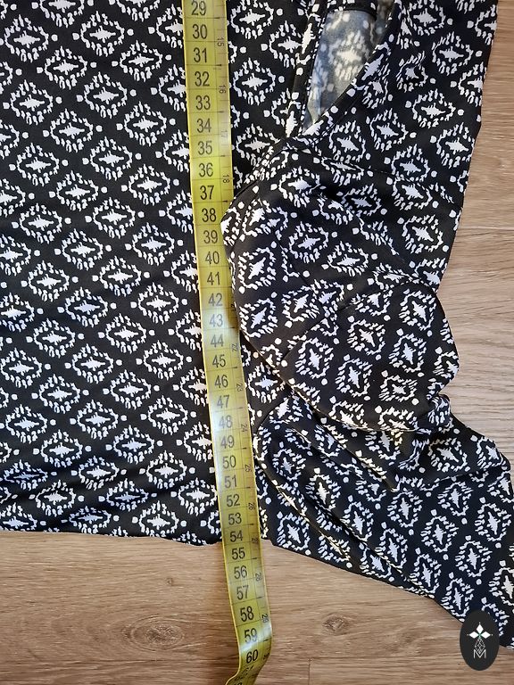 Materjal on õhuke, nagu šifoon. Elastne. Pikkus 96cm. Rinnaümbermõõt ilma venituseta 120cm ja venib kuni 130cm.