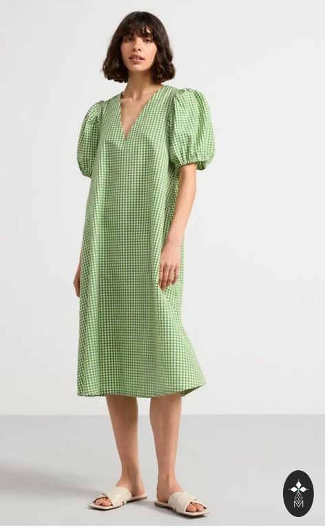Boden - mugav ja kerge puuvillane kleit suveks. Näeb hea välja figuuril. Küljel tõmblukk, on vooder. Materjal ei veni. L suurus. Pikkus - 99 cm, rindkere - 54 cm, talje - 46 cm, puusad - 52 cm, varrukad - 14 cm.