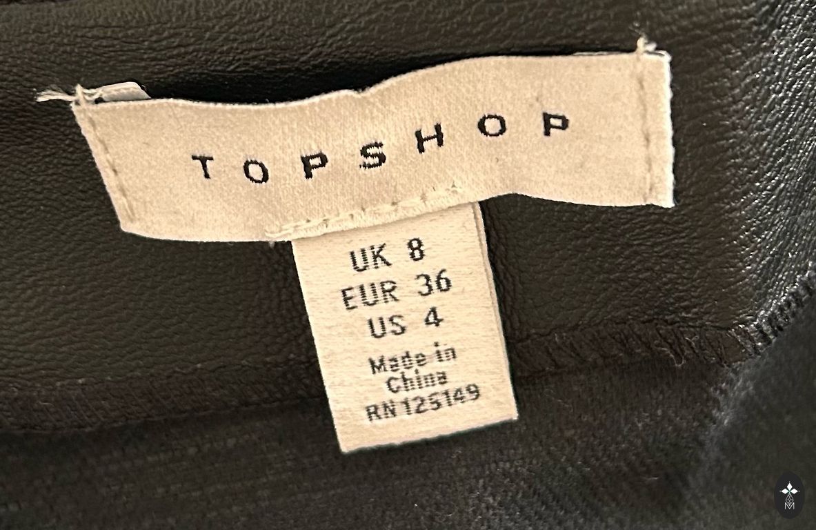 Очень удобно. Размер S. Материал искусственная кожа. В качестве дефекта могу указать только заклепку на задней части юбки, обведенную синим на фото, которая немного поцарапана. Все остальное в порядке.