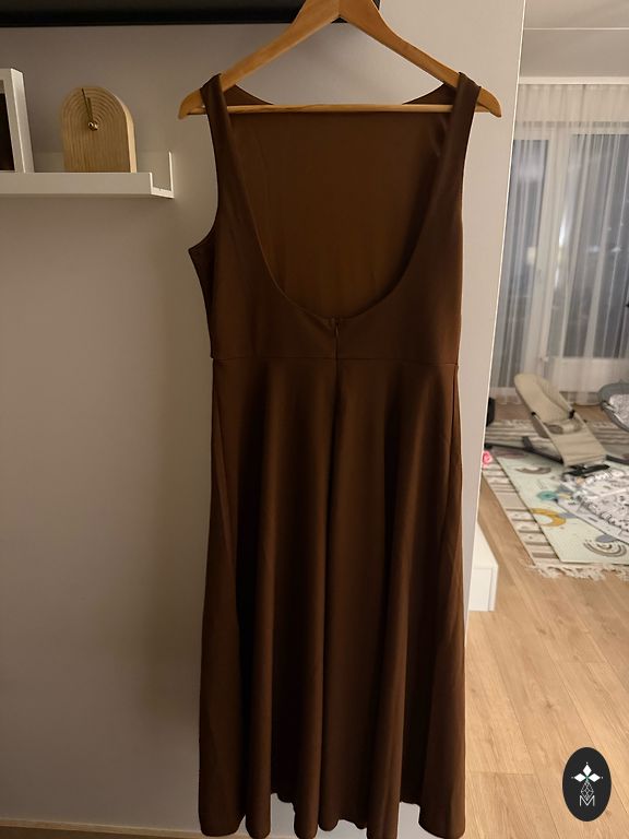 Kleita tikai piemērīta. Priekšpuses garums 84cm, aizmugures 144 cm, krūtīs 41cm, piedurkņu garums 60cm