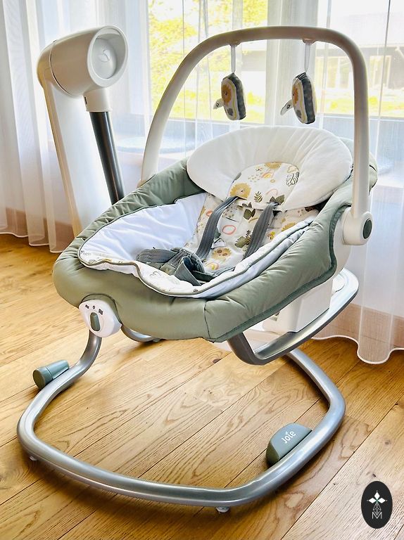 Feeding chair + swing. Connectable to both mobile and USB with melodies. The insert and arch with animals have not been used. More: