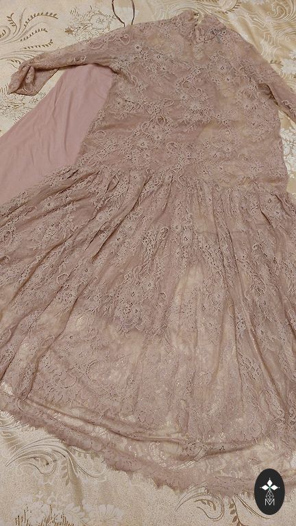 Paprasta eleganti ir skoninga suknelė renginiui! Akcentas yra rankovės, kurios gale pailgintos ir su skeltuku, suteikiančiu elegancijos visam vaizdui. Spalva yra švelni - tarp smėlio ir švelniai rožinės. Suknelės ilgis nuo peties yra 89 cm.
