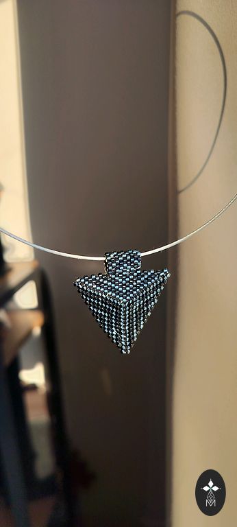Pirkts no Lietuvas meistara gadatirgū, diemžēl vairāk nekas nav zināms. Rotas darinātas pēc autora tehnoloģijas, īpašā veidā apstrādājot koku un iestrādājot tajā diedziņus. Kaklarota ir no pītās kokvilnas šņores ar bronzas krāsas furnitūru. garums 50 cm, kulona diametrs 3 cm. Rokassprādze brīvi aptinama; no melnas un tirkīza krāsas ādas strīķiem, ar sudraba krāsas piekariņu - putniņu. Boho un etniskā stila krustceles.