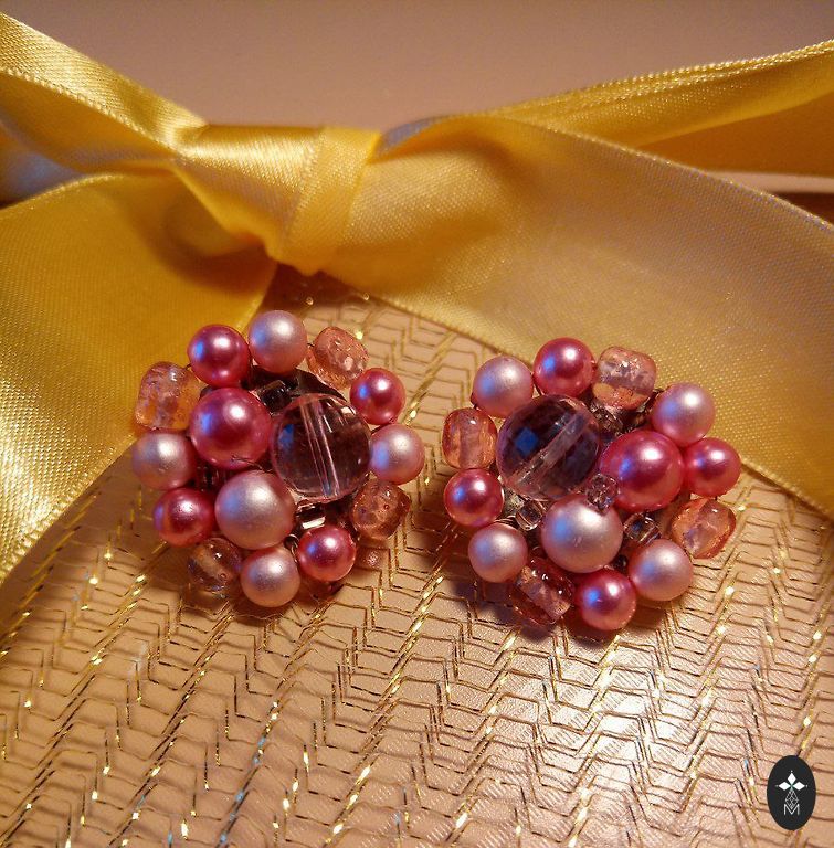 Looduslik roosa pärlite komplekt: kõrvarõngad, käevõru (reguleeritav)