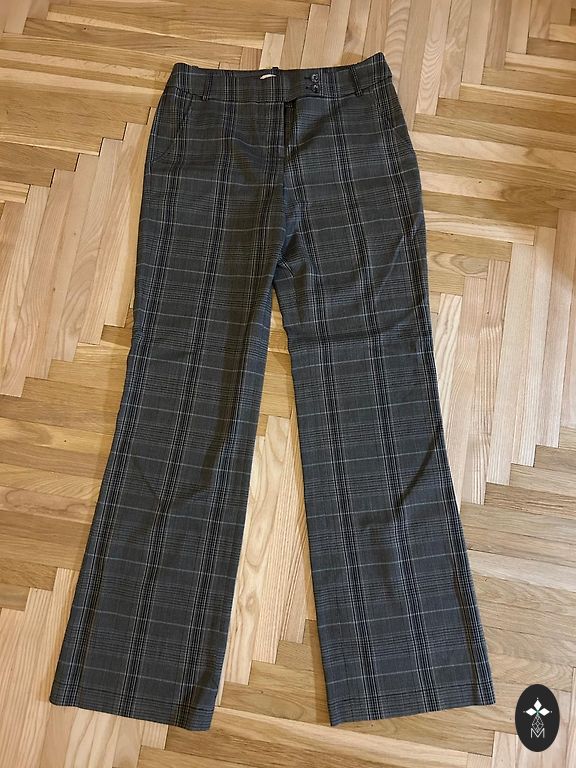 Jaunas, pelēki melnas brīvi krītošas lina bikses uz gumijas, ar kabatām.