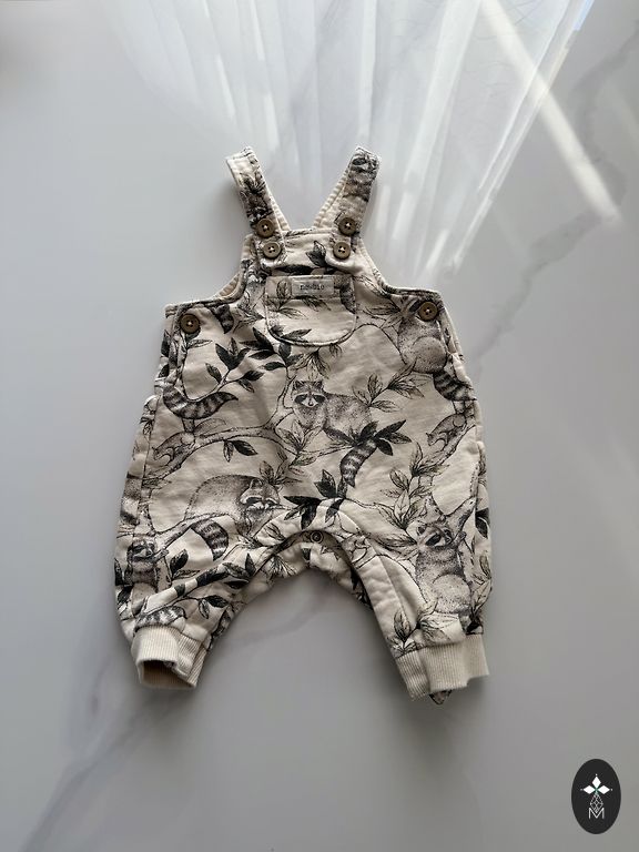 Kokvilnas muslina bikšeles, uzvilkām tikai divas reizes. Ļoti plānas, vieglas. Izcilas karstām vasaras dienām. Norādīts izmērs 74cm, bet noteikti derēs mazākam bēbītim, mums drusku par šauru stilbiņos.