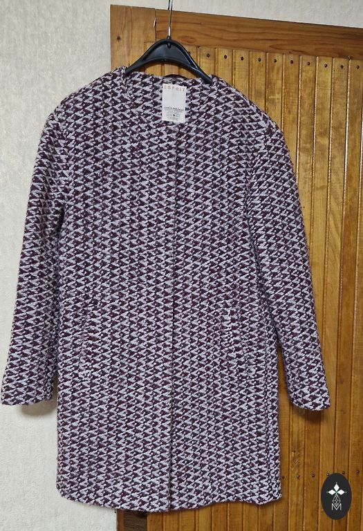 Pleasant material, slightly velvety. Inside pocket with zipper. Suitable for cool summer days. No defects.