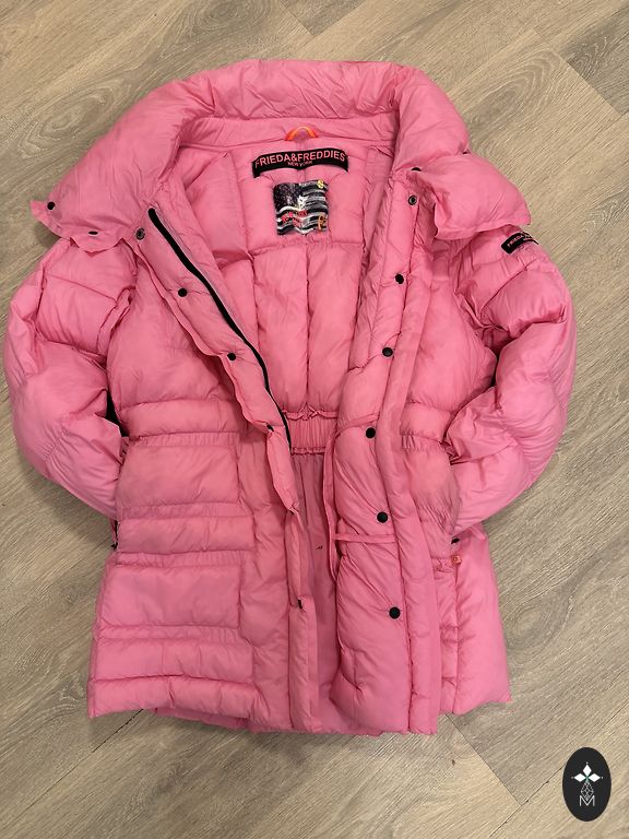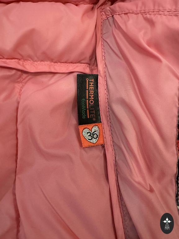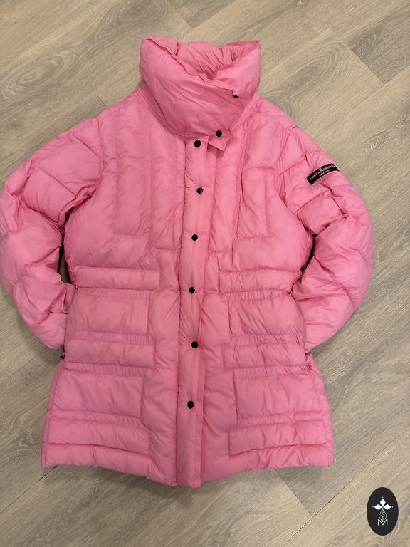 Maigi rozā krāsā jaka,paredzēta rudens - pavasaris,kabatas ar rāvējslēdzēju,krūts apkartmers 100 cm,roku garums no pleca uz leju 63 cm,no mugurpuses uz leju 62 cm.