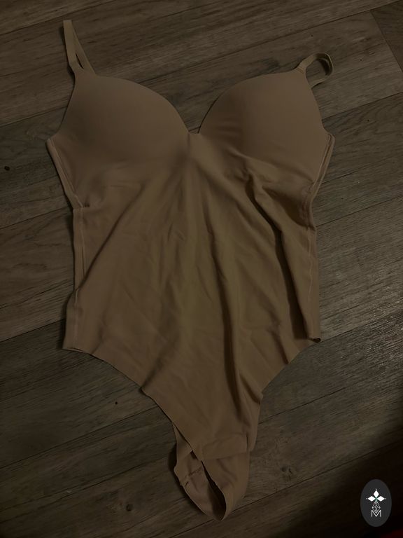 The bodysuit material is completely elastic and silky to the touch. Size indicated as S. Length without stretching 72 cm. Bodysuit worn once, new condition.