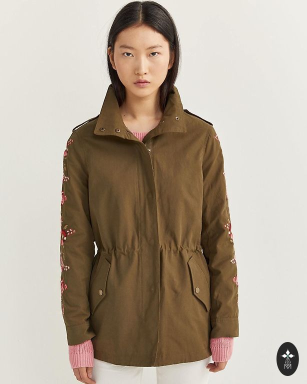Selle suve trend. Puuvillane pikkade varrukatega jope, mida saab üles keerata 3/4 pikkuseni. Kinnitub tõmblukkude ja trukkidega. Tagaküljel elastne, külgedelt saab pingutada või lõdvendada. Allääre saab pingutada. Kahel rinnatasku ja kahel käes taskul. Tõmblukk ja pingutusnöörid töötavad. Jope pikkus 65 cm.