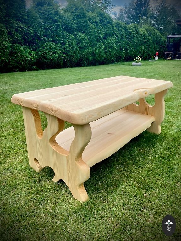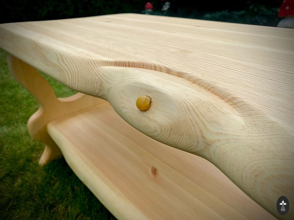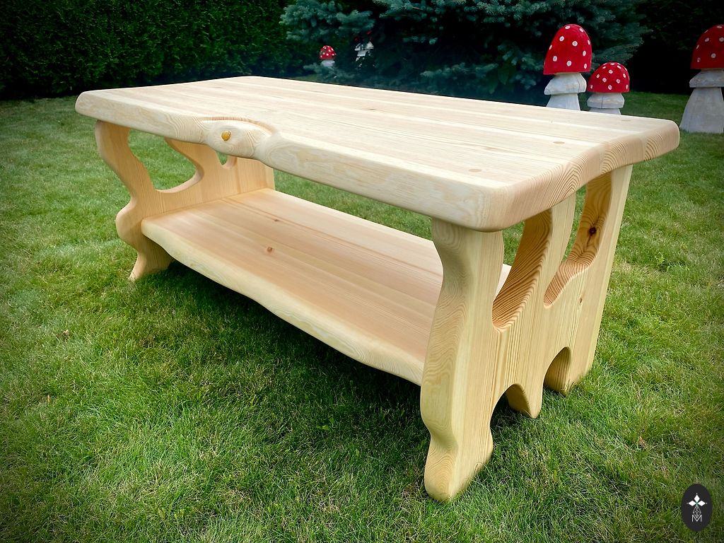 Unikāls, ar roku darināts galds, kurā apvienots industriālais mantojums un dabīga koksnes elegance. Galda virsma veidota no kvalitatīna masīva ozolkoka ar izteiksmīgu tekstūru, kas akcentē koka dabiskumu un siltumu. Tā virsma ir gludi pulēta, un apstrādāta ar eļļu, saglabājot koksnes autentiskumu un ilgmūžību. Šis galds ir lielisks akcents gan modernā interjerā ar retro pieskārienu, gan lauku stilā, kā arī mākslinieciski iekārtotā studijā vai kafejnīcā. Tas var kalpot kā rakstāmgalds, kafijas galds.