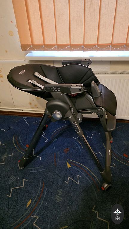 Noņemamā dubultā paplāte ir ideāli piemērota bērna pirmajām ēdienreizēm. Attālumu starp paplāti un bērnu var regulēt. Prima Pappa Follow Me var lietot bez paplātes, lai bērns varētu ēst pie galda. Augšējā paplāte ir piemērota mazgāšanai trauku mazgājamā mašīnā, un tai ir turētājs krūzīšu un pudelīšu ievietošanai. Pārvalks, kas ir izgatavots no PVC un mākslīgās ādas, ir ne tikai stilīgs, bet to var arī bez lielas piepūles noslaucīt ar mitru drānu.