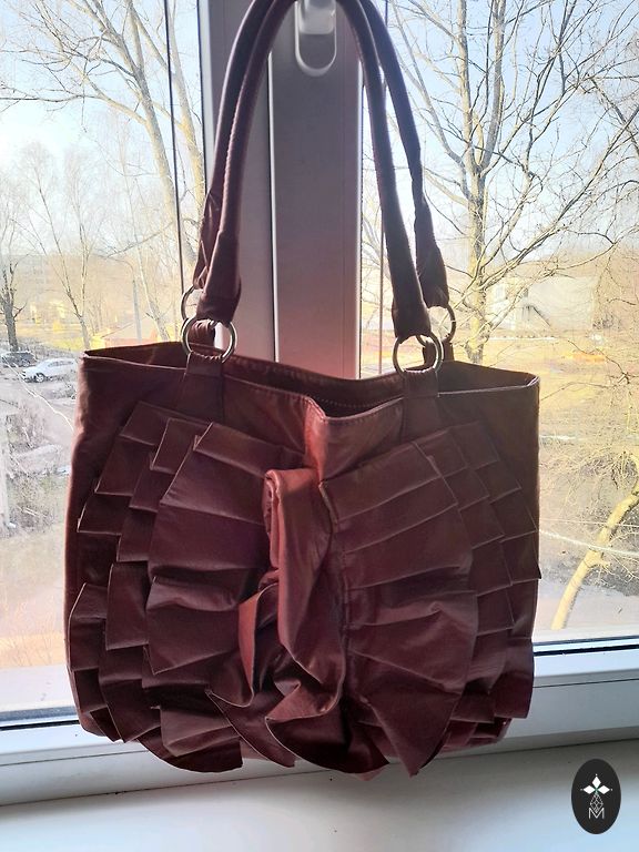 Ādas Soma Maziņā HM .peleka krāsa . Izmērs šaurums 22cm / augstums 16cm . Telefons un kosmētikai vietas pietiekoši . Zamšada. Diemžēl rokturi palika tumšāk no laika . Kaut kur vietam arī krāsa tumšāka . Bet ja ar šallīte tad ļoti smuki 🎀. Somiņa ar šallīte kopā maksa 15 EUR . Cena kopā ar sūtīšanu . Somiņa tīra . Smakas nav . Citus izteiktus defektus nav .