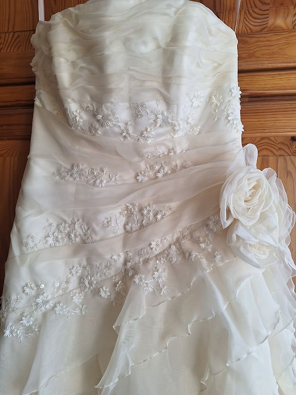 Продаю свое свадебное платье вместе с фатой и чехлом. Платье застегивается на молнию и на шнуровку. Платье чистое. Фата длинная, мне было длиньше чем само платье.