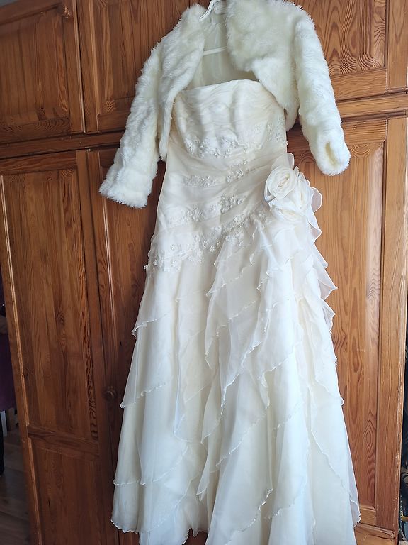 Pārdodu savu kāzu kleitu kopā ar plīvuru un pārvalku. Kleitai gan rāvējslēdzējs, gan šņores. Kleita ir tīra. Plīvurs ir garš, man bija pat garāks par kleitu. Augums 160 cm + bija augstpapēžu kurpes. ATRODAS Daugavpilī