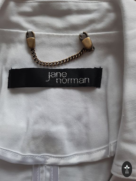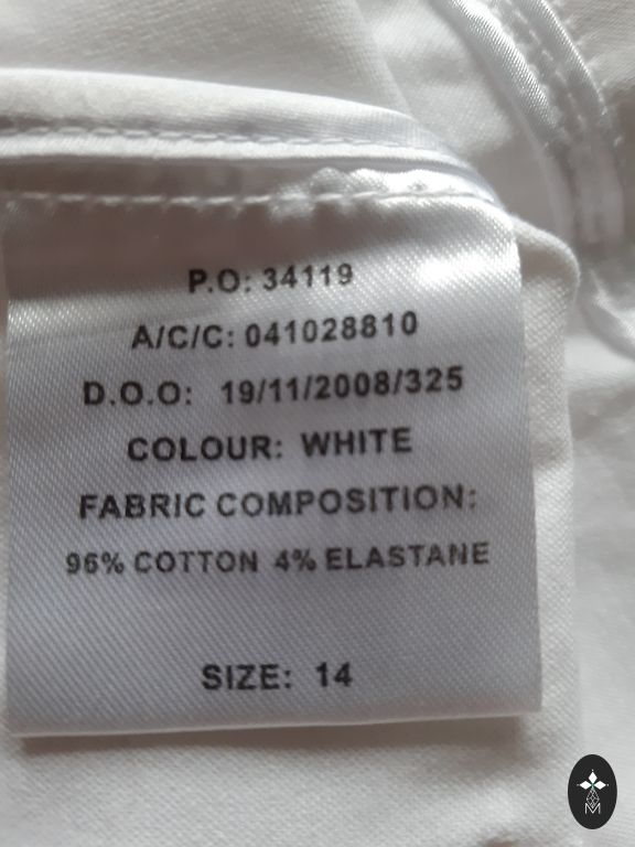 Plāna, viegla blūze, kura zem žaketes ir lietišķa un bez žaketes ir koķeta. Plecos aptuvenais platums: 35 cm (der gan šaurākiem, gan platākiem pleciem); krūtīs: 46 cm; blūzes garums no pleca: 57 cm.